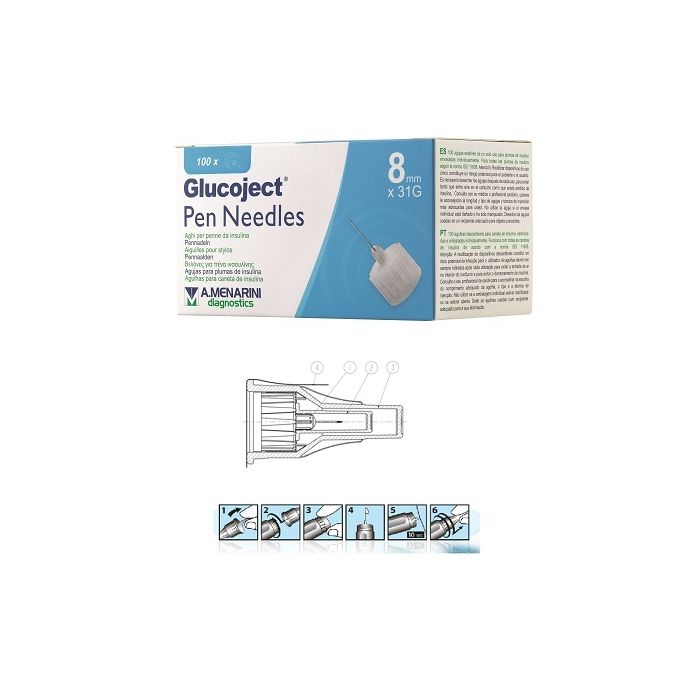 Ago per penna da insulina glucoject lunghezza 8 mm gauge 31 100 pezzi