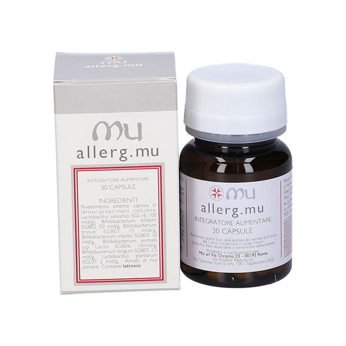 Integratore alimentare composto da 30 capsule. Allerg.mu è un integratore naturale a base di probiotici attivi. Sono stati selezionati i migliori ceppi batterici che, secondo gli ultimi studi, favoriscono la produzione della diamminossidasi (DAO) da parte delle cellule enterocromaffini intestinali e la conseguente eliminazione dell’istamina dall’organismo.