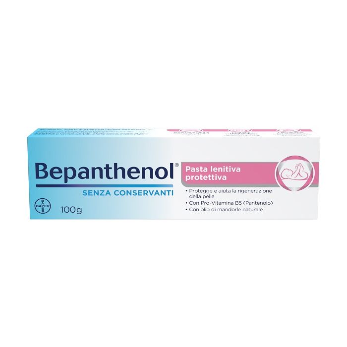Grazie alla sua formulazione, Bepanthenol pasta lenitiva protettiva si prende cura della pelle secca, screpolata e facilmente irritabile, proteggendola dalla disidratazione e stabilizzando la naturale funzione di barriera della pelle.