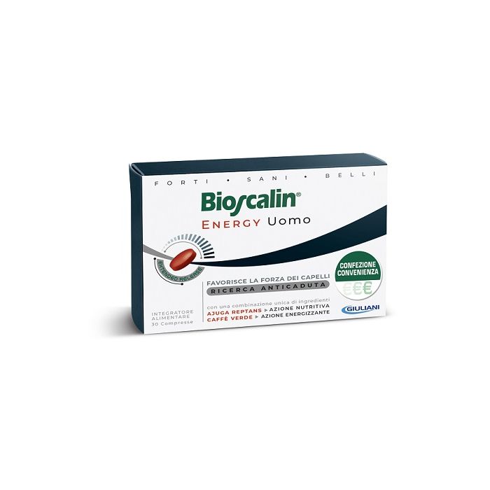 Integratore alimentare utile per i capelli dell'uomo, che associa l'azione combinata dei due esclusivi complessi ATP-3 e AJB-Complex, alla tecnologia brevettata R-Plus, in grado di veicolare in modo ottimale tutti gli attivi e massimizzare l'assorbimento, potenziandone l'azione sul capello.