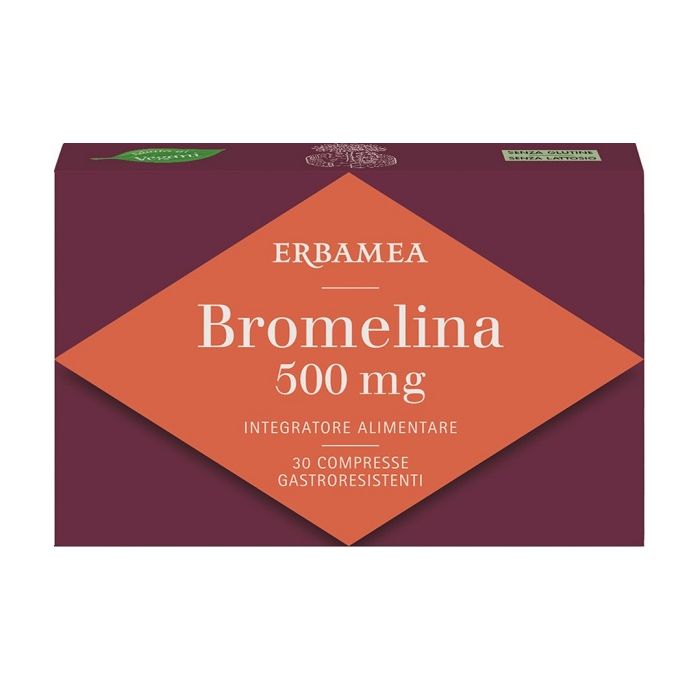 Bromelina 2.500 GDU/g da gambo di ananas [Ananas comosus (L.) Merr.]*; agente di carica: cellulosa microcristallina (gel di cellulosa); agenti antiagglomeranti: sali di magnesio degli acidi grassi, biossido di silicio, talco; ananas [Ananas comosus (L.) Merr.] gambo estratto secco* (attività enzimatica come bromelina 250 GDU/g); agenti di rivestimento: etilcellulosa, idrossipropilmetilcellulosa, alginato di sodio, trigliceridi a catena media, acido stearico, cellulosa microcristallina (gel di cellulosa).