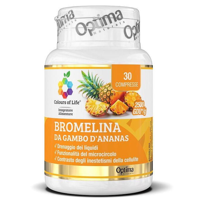 Integratore alimentare in compresse a base di bromelina da gambo d’ananas (2.500 GDU/g).