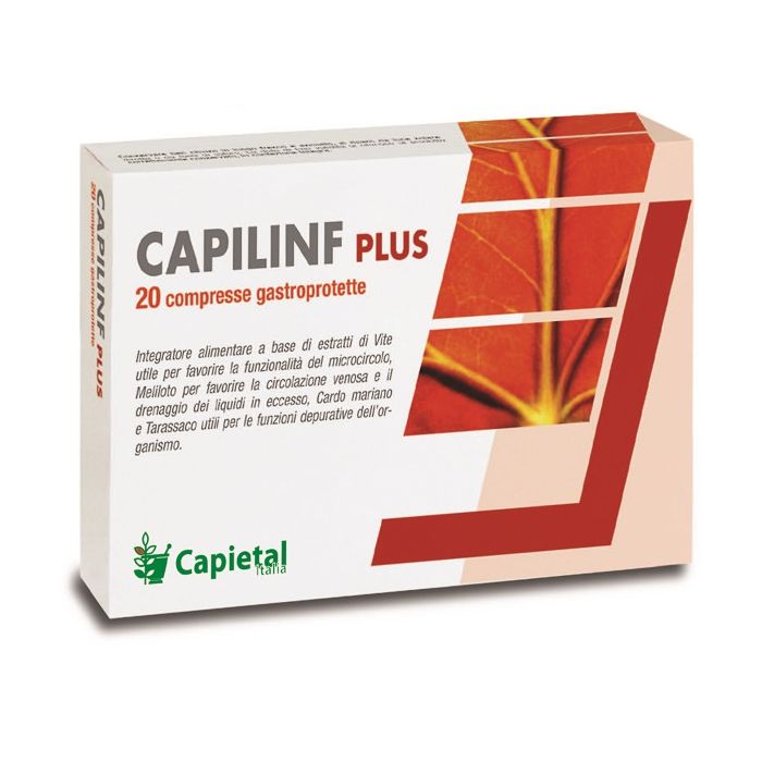 Integratore alimentare a base di estratti di Vite utile per favorire la funzionalità del microcircolo, meliloto per favorire la circolazione venosa e il drenaggio dei liquidi in eccesso, cardo mariano e tarassaco utili per le funzioni depurative dell’organismo.