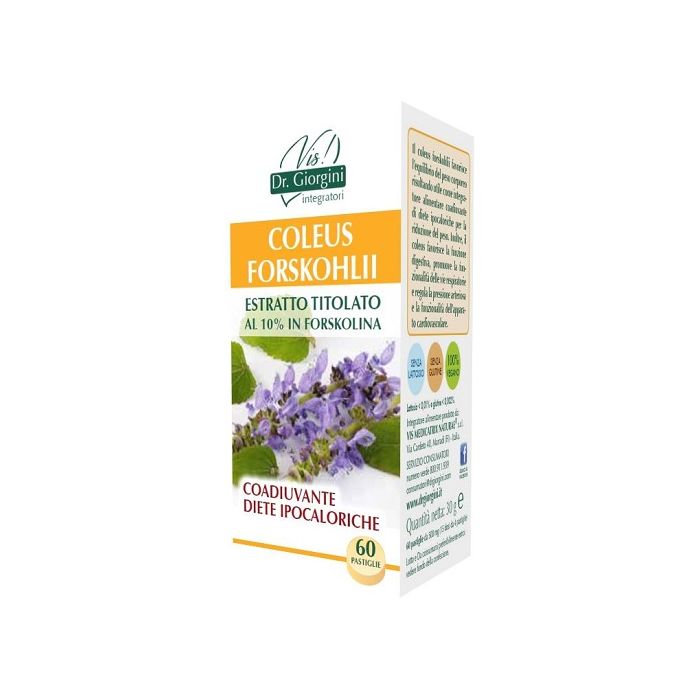Integratore alimentare a base di Coleus forskohlii, utile per favorire l'equilibrio del peso corporeo. Inoltre, il coleus favorisce la funzione digestiva, promuove la funzionalità delle vie respiratorie e regola la pressione arteriosa e la funzionalità dell’apparato cardiovascolare.