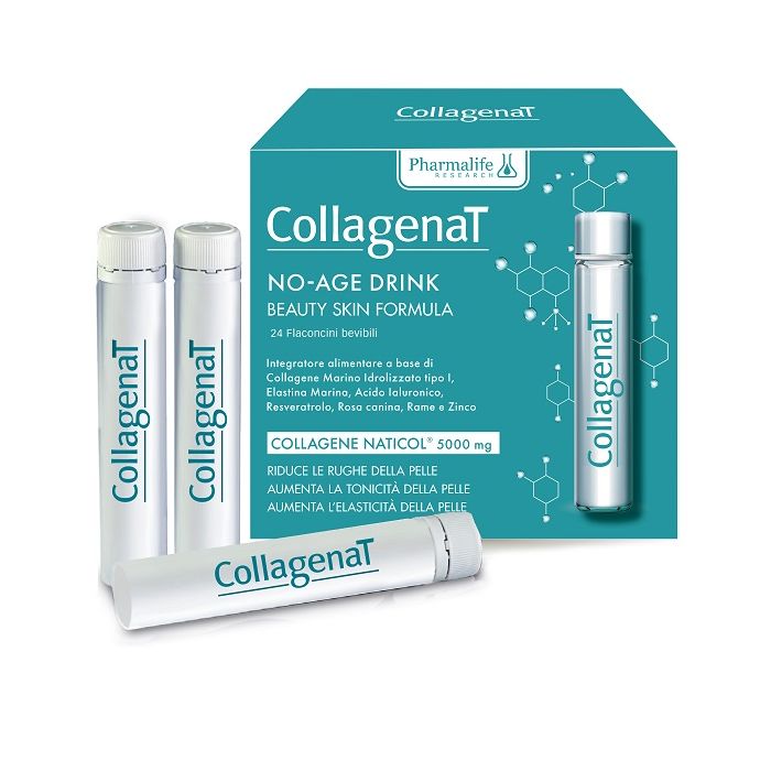 Integratore alimentare formulato con 5.000 mg per dose di Naticol, un particolare collagene marino idrolizzato di tipo I, e arricchito con elastina marina, acido ialuronico e principi attivi funzionali, in particolare trans-resveratrolo, estratto di rosa canina ricco in vitamina C, succo di mirtillo, zinco e rame.