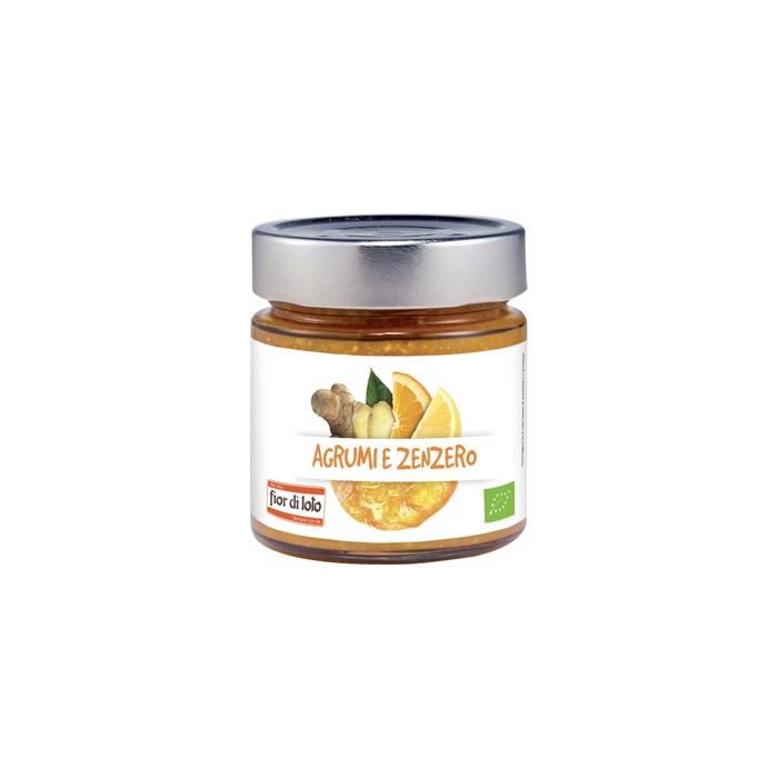 Agrumi bio in proporzione variabile 40% (arance bio, limoni bio, clementine bio), purea di mela concentrata bio, succo di mela concentrato bio; gelificante: pectina; zenzero in polvere bio 0,9%.