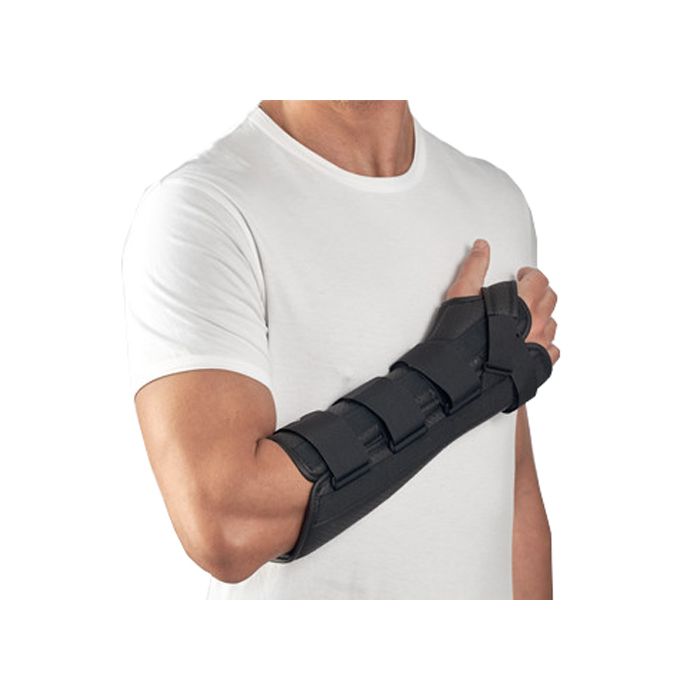 Tutore lungo per avambraccio e polso. È realizzato con tessuto AirSanmed II multistrato, traforato e traspirante per garantire un maggior comfort.