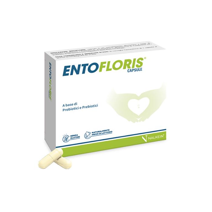 ENTOFLORIS® capsule è un complemento alimentare a base di Probiotici e Prebiotici. I Probiotici (L. Acidophilus, L. Rhamnosus, B. Coagulans) ed i Prebiotici (FOS) favoriscono l’equilibrio della flora intestinale.