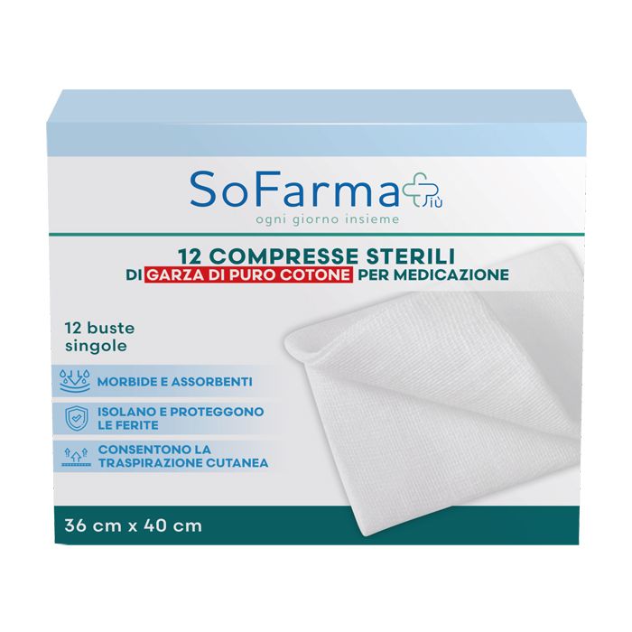 GARZA COMPRESSA IN COTONE 36X40 CM 12 PEZZI SOFARMAPIU'