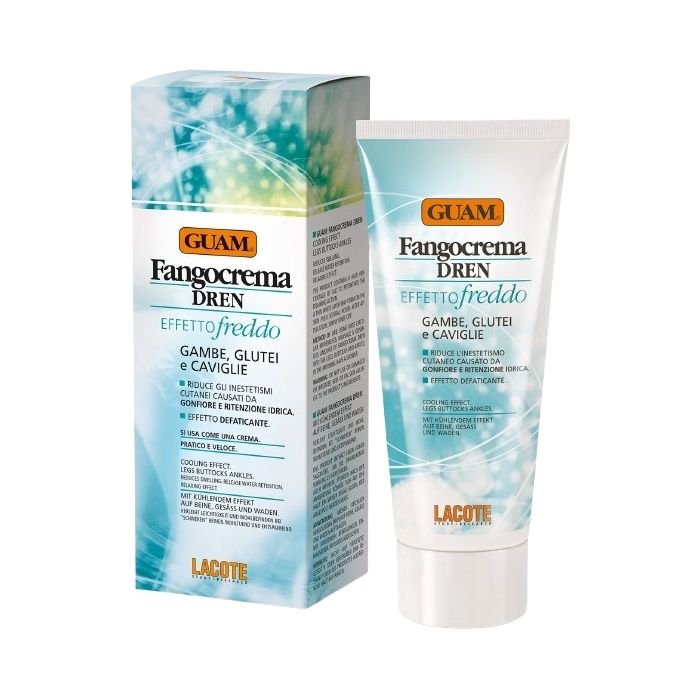 Riduce gli inestetismi causati da gonfiore e ritenzione idrica. con l'azione sinergica delle alghe guam, del sale marino e del complesso rinfrescante, guam fangocrema dren effetto freddo nella sua formulazione esclusiva, mira a trattare esteticamente i punti critici del corpo, quali gambe e glutei, (spesso soggetti a ritenzione idrica) associando un'azione defaticante. È consigliabile massaggiarlo dolcemente sulla pelle, prima di coricarsi, perchè trova nel riposo notturno il momento ideale per aiutare l'azione drenante e favorire l'eliminazione dei liquidi in eccesso. La pelle ritrova tonicità e compattezza. Il prodotto contiene un'alta percentuale di sale per potenziare l'azione drenante. anche dopo diverse ore dall'applicazione, sulla pelle potrebbe formarsi una velatura bianca da risciacquare.