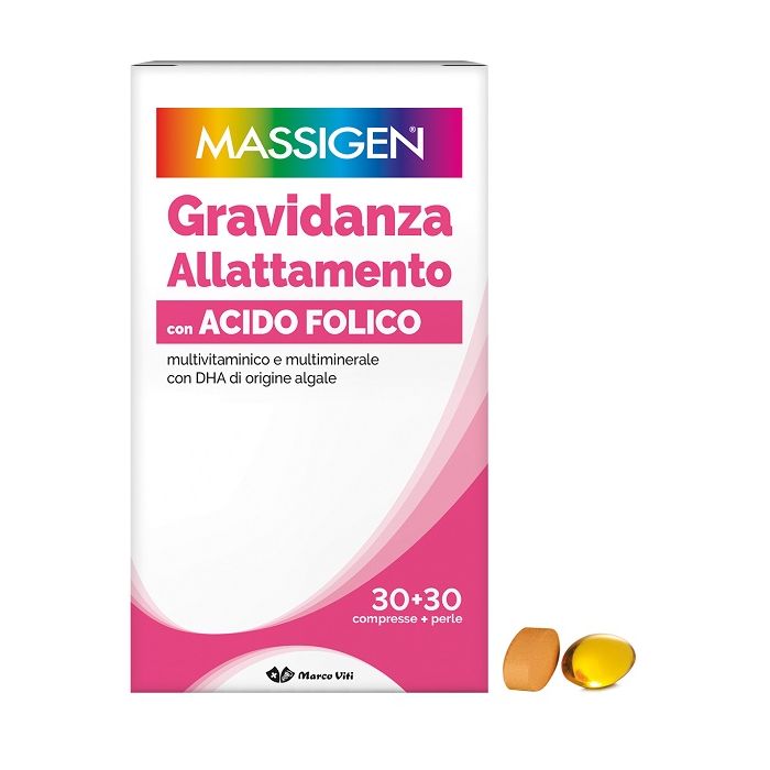 Massigen gravidanza allattamento con acido folico multivitaminico e multiminerale 30 compresse rivestite da 1,1 g + 30 perle da 700 mg