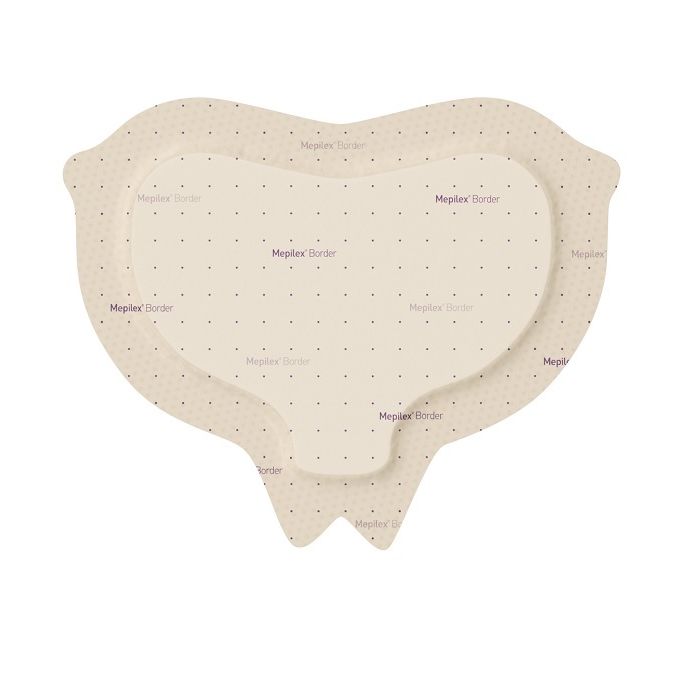 Medicazione assorbente in schiuma di poliuretano con bordo e strato di contatto in silicone morbido per la zona sacrale. Mepilex Border Sacrum può essere d'aiuto nella prevenzione delle lesioni da pressione della regione sacrale, utilizzato in aggiunta ai protocolli di prevenzione standard. È adatto per la gestione di un'ampia gamma di ferite da poco molto essudanti, quali: