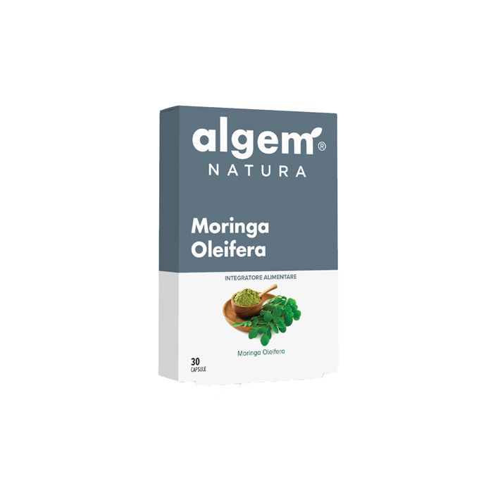 Integratore alimentare in capsule, composto da polvere di moringa pura che favorisce la funzionalità digestiva, la fluidità delle secrezioni bronchiali, la regolarità del processo di sudorazione, la normale circolazione del sangue, il metabolismo dei lipidi e l’equilibrio del peso corporeo.