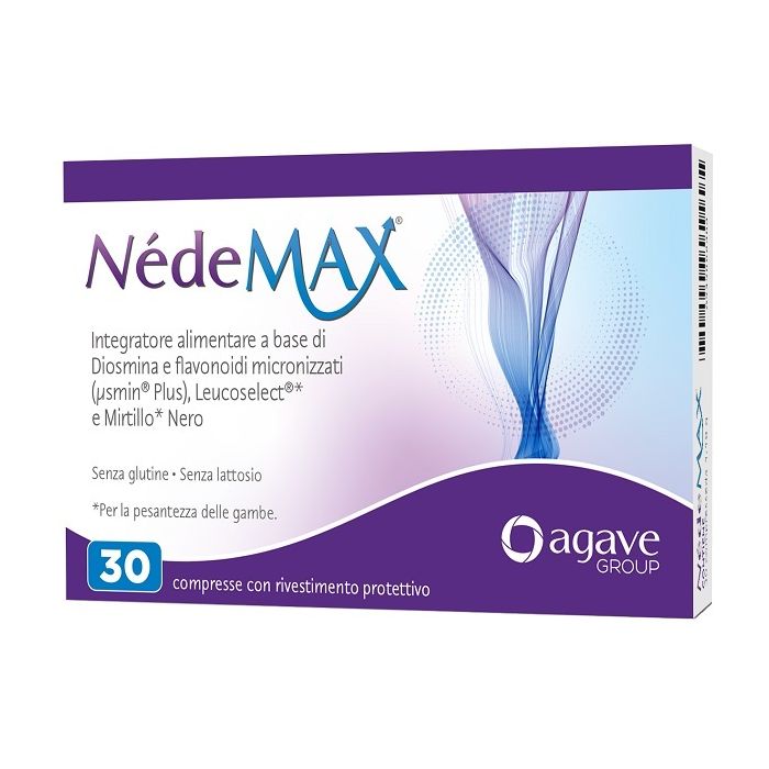 Integratore alimentare a base di diosmina e flavonoidi micronizzati, Leucoselect (proantocianidine) e mirtillo nero. Nédemax è indicato in tutti i casi di insufficiente apporto nella dieta o aumentato fabbisogno di tali nutrienti. La Vitis vinifera (da cui sono estratte le proantocianidine) e il mirtillo nero sono utili alla funzionalità del microcircolo, in caso di pesantezza delle gambe.