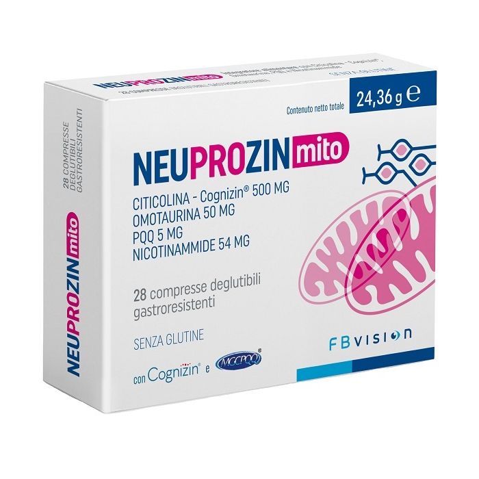 Cognizin-citicolina; agenti antiagglomeranti: acidi grassi, carbossimetilcellulosa sodica reticolata, sali di magnesio degli acidi grassi, biossido di silicio, trigliceridi a media catena, talco; agente di carica: cellulosa microcristallina (gel di cellulosa); nicotinammide (vitamina PP); omotaurina; maltodestrina; agenti di rivestimento: etilcellulosa, idrossi-propil-metilcellulosa, idrossi-propil-cellulosa, polivinilpirrolidone; stabilizzanti: polidestrosio, alginato di sodio; MGCPQQ-sale disodico di pirrolochinolina chinone (PQQ); colorante: ossidi di ferro.