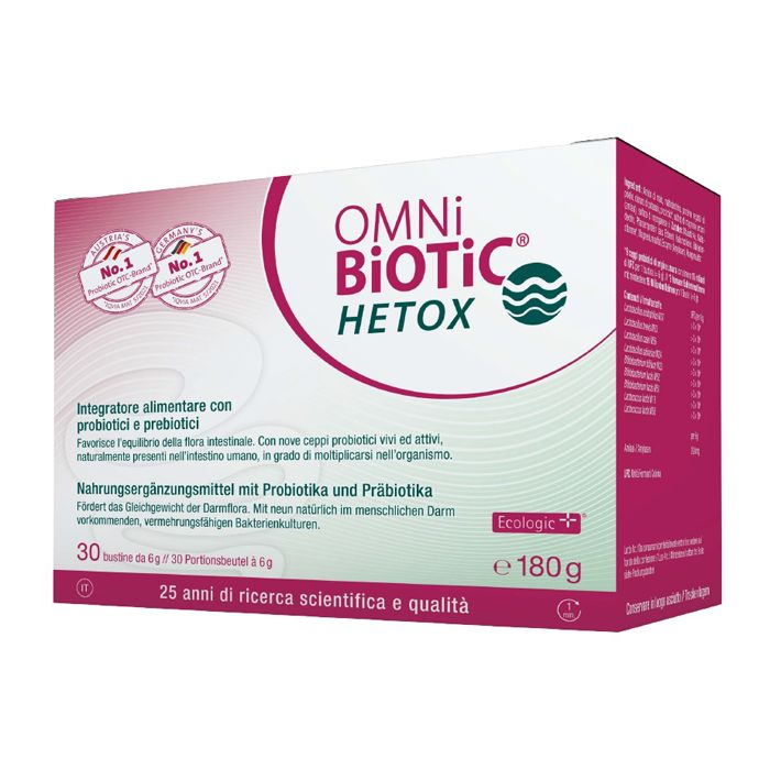 Sciogliere 1 bustina di OMNi-BiOTiC HETOX (pari a 6 g) 1 volta al giorno in circa 125 ml di acqua, attendere almeno 1 minuto (tempo di attivazione), mescolare nuovamente prima di bere. Si raccomanda di assumere il prodotto a stomaco vuoto.