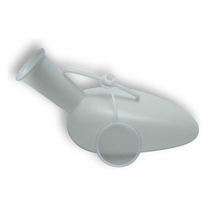 Urinale per uomo 1000 ml, graduato, in polietilene neutro con tappo agganciato. Confezionato singolarmente in sacchettino.