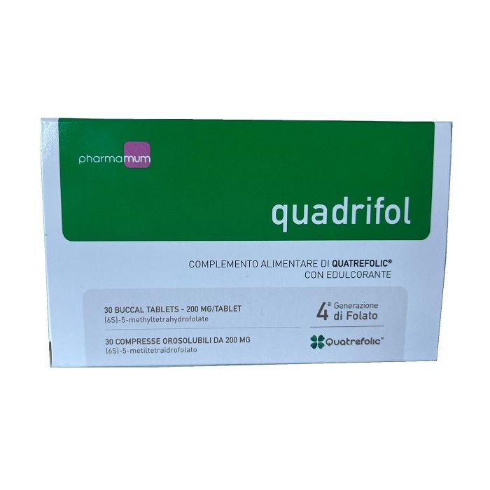 Complemento alimentare di Quatrefolic. Il prodotto risulta utile in caso sia richiesta una supplementazione delle sostanze in esso contenute. Il folato svolge molteplici funzioni all'interno dell'organismo, esso contribuisce alla normale sintesi degli amminoacidi, molecole essenziali per la sintesi delle proteine; contribuisce alla normale emopoiesi e alla normale funzione del sistema immunitario. In gravidanza il folato contribuisce alla crescita dei tessuti materni e interviene nel processo di divisione delle cellule; inoltre contribuisce alla normale funzione psicologica e alla riduzione della stanchezza e dell'affaticamento.