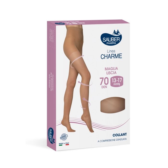 70 DEN: Svolge un’azione tonificante delle gambe e preventiva delle varici e attenua la sensazione di gambe pesanti e sofferenti, riducendo i gonfiori di media entità e i formicolii alle gambe.