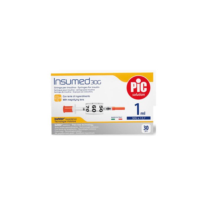 Siringa insulina pic insumed 1 ml 100 ui ago gauge 30 12,7 mm senza spazio morto 30 pezzi