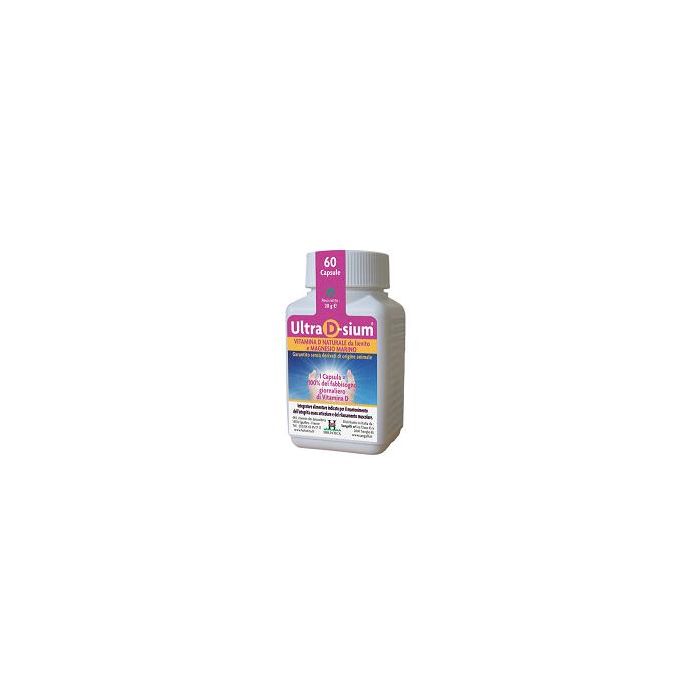 Complemento alimentarea a base di vitamina D vegetale e magnesio; indicato per il mantenimento dell'integrità osseo-articolare e della funzionalità muscolare. Una sola capsula di Ultra D-sium apporta il 100% di RDA (apporto giornaliero raccomandato) in Vitamina D in sinergia con il magnesio marino. Senza derivati animali.
