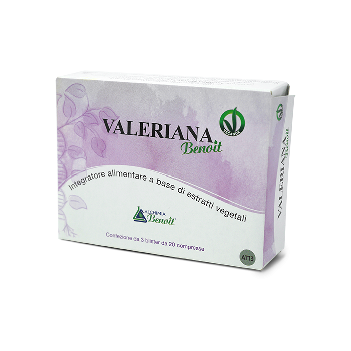 Valeriana (Valeriana officinalis L.) radice - e.s. tit. allo 0,42% in acidi valerianici - 60% e polvere 30%; addensanti: gomma d'acacia; agente di carica: cellulosa; agente antiagglomerante: talco.